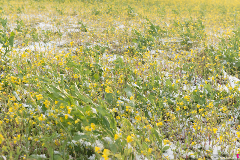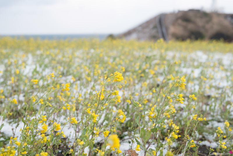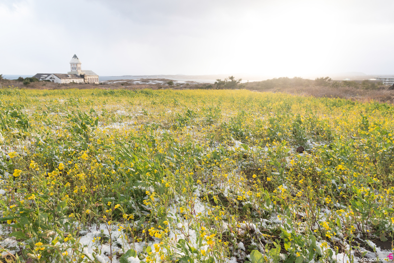 눈 내린 유채꽃밭은 나름 새로운 느낌이었다.