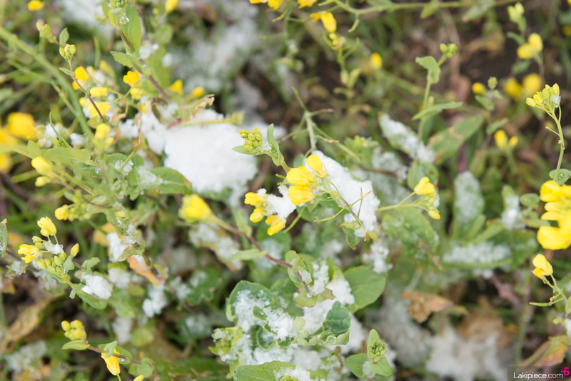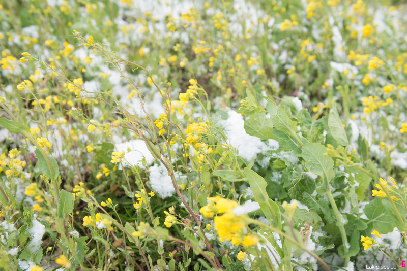 눈 속에서도 강인한 생명력을 보여주는 유채꽃!