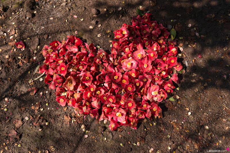 떨어진 동백꽃을 모아서 만든 하트♥