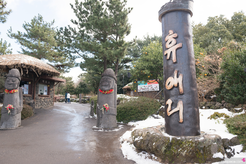 꽃 장식을 한 돌하루방이 입구에서 반겨주고 있었다.