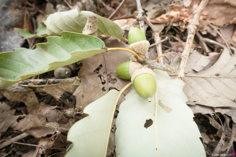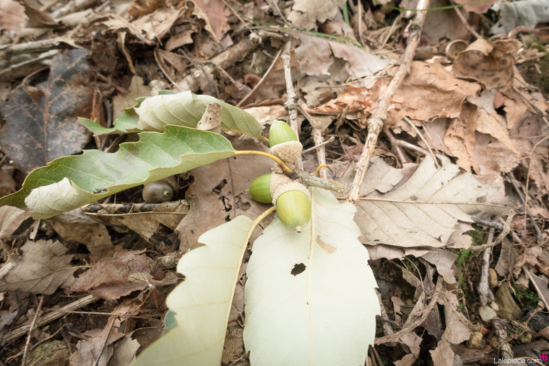 아직은 덜 익은 초록색 도토리도 보였다.