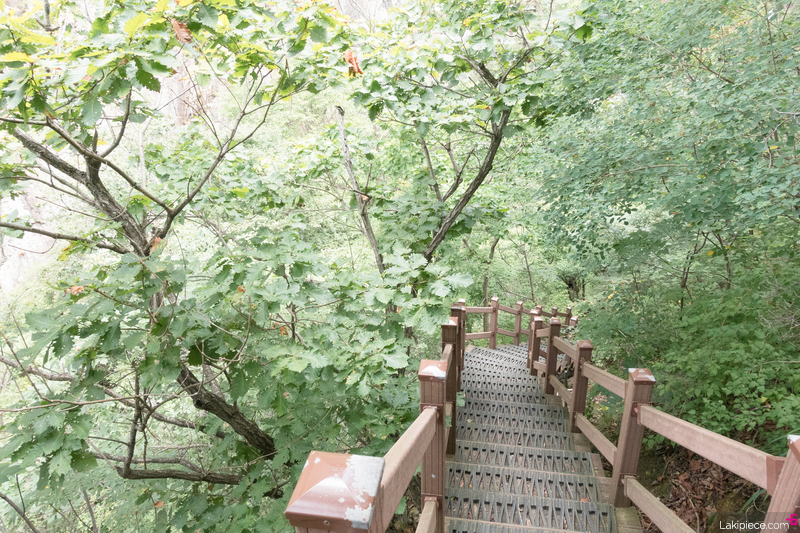 폭포로 내려가는 계단.