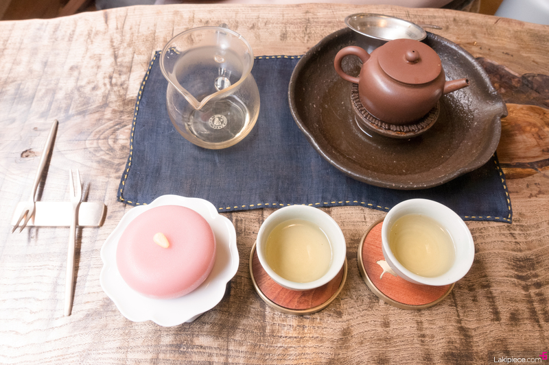 교동다원 대표차라는 황차와 시즌 한정 벚꽃 양갱을 주문했다.