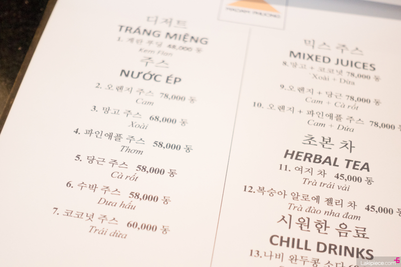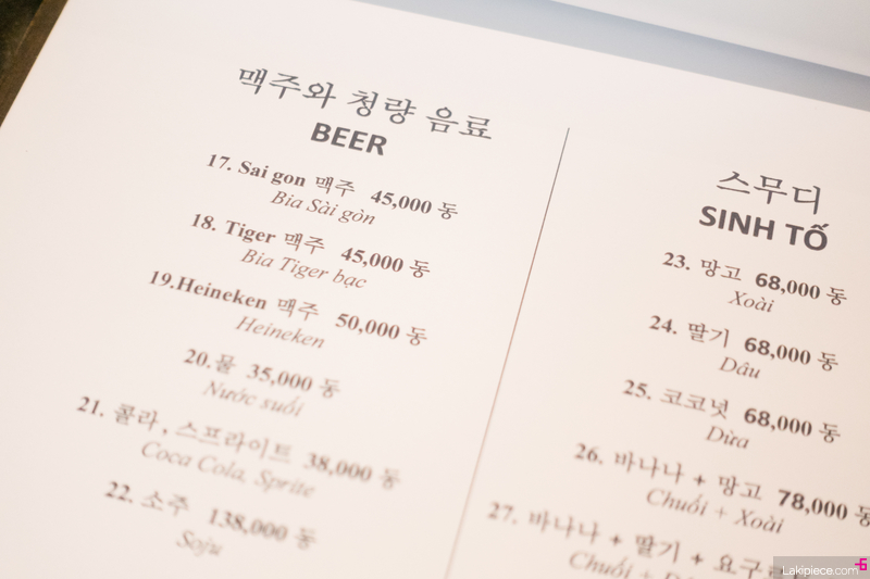 한국어 메뉴판이 준비되어 있었다. 덕분에 편하게 주문이 가능했다.
