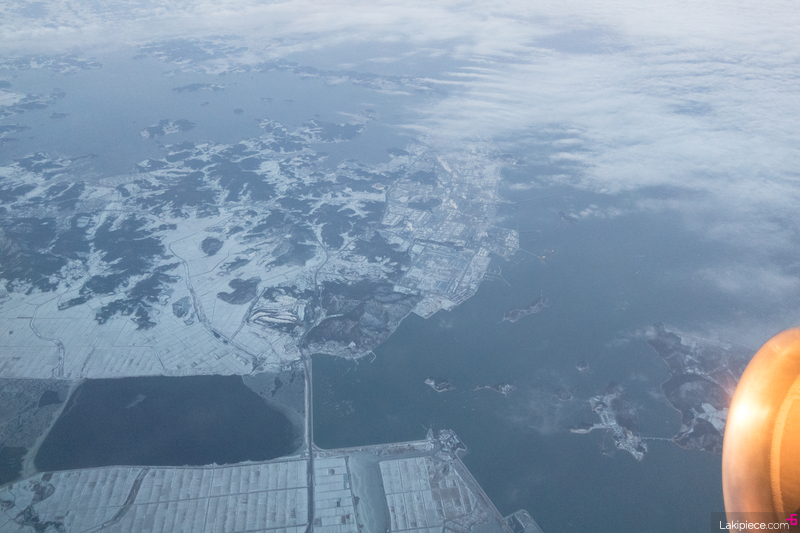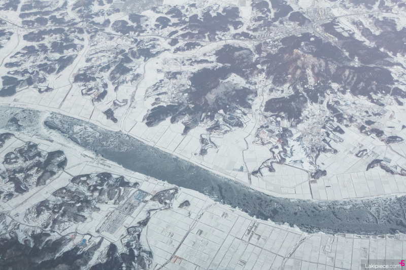 드디어 이륙! 창 밖으로 눈 덮인 풍경이 보였다.