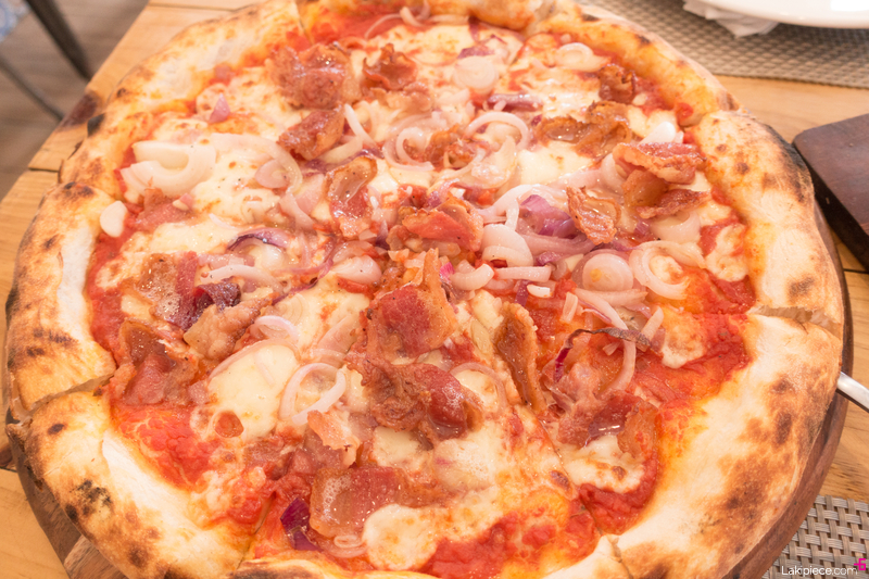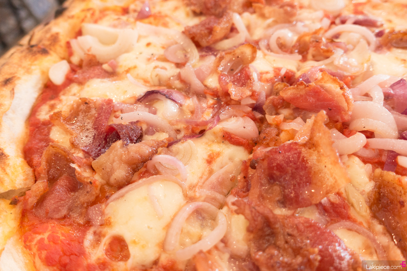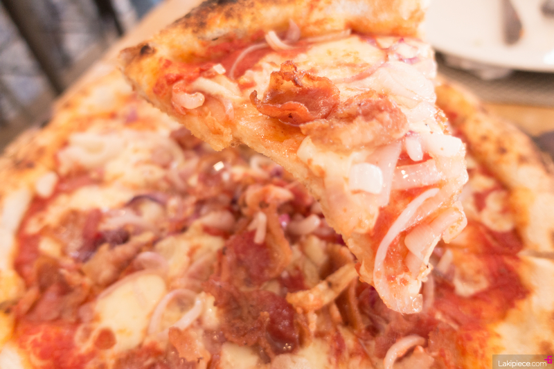 토마토 소스에 양파, 베이컨이 올라간 피자였는데