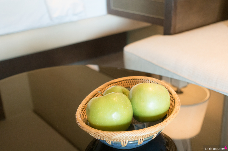 테이블 위에 다소곳하게 놓여있는 웰컴 과일 :)