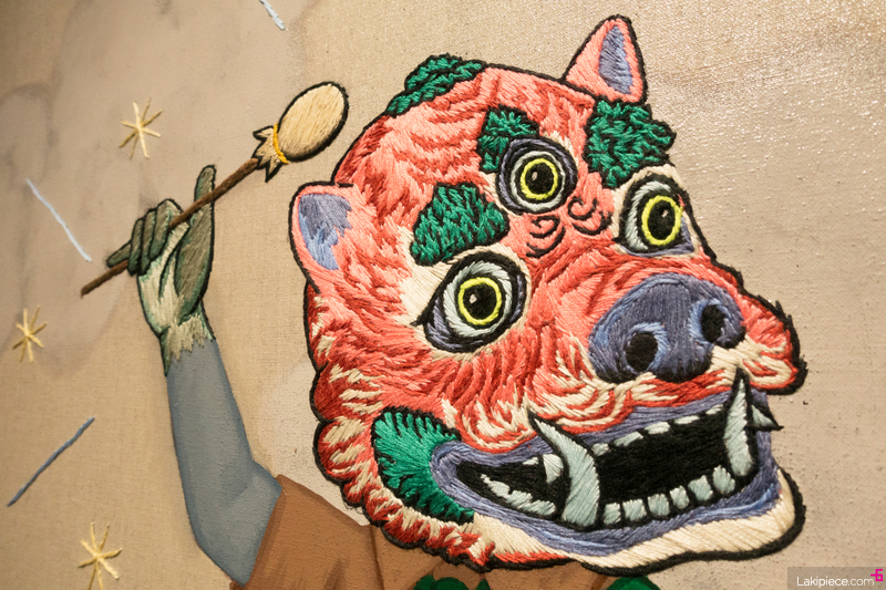 그림의 일부가 자수로 표현되어 있는 작품이었다.