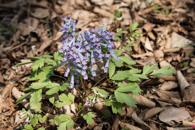 주머니 모양의 보라색 꽃이 무더기로 피어있는 '현호색'도 곳곳에 보였다.
