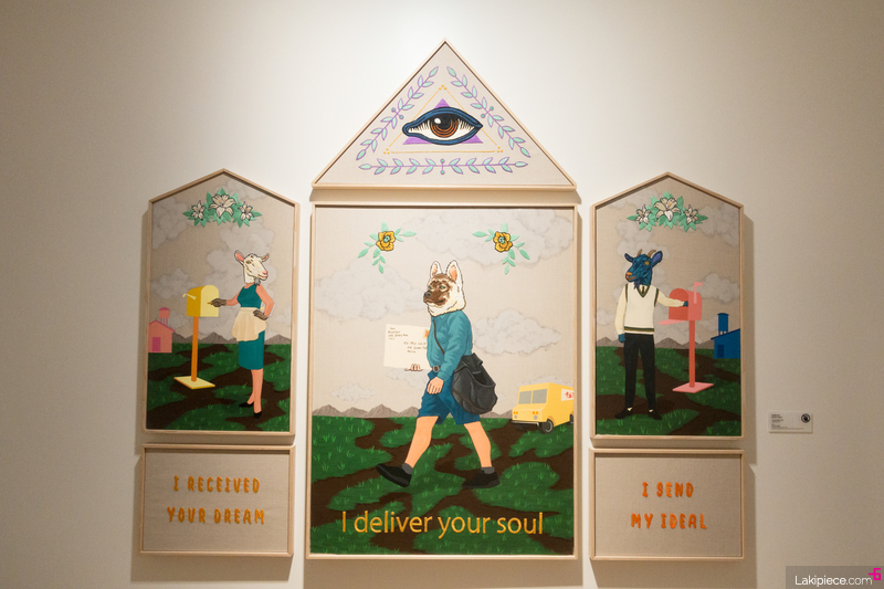 그림의 일부가 자수로 표현되어 있는 작품이었다.