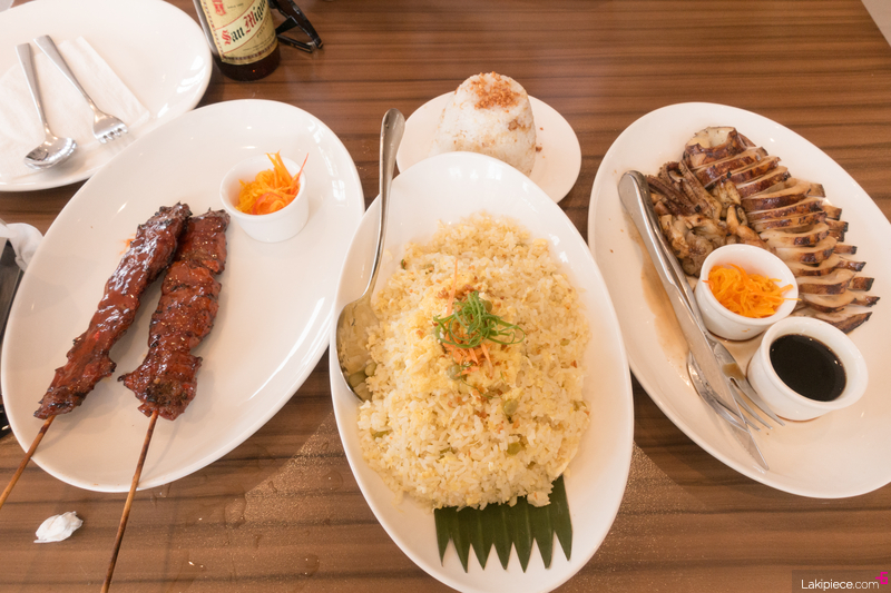 돼지고기 바베큐 꼬치와 게살 볶음밥을 주문했다.