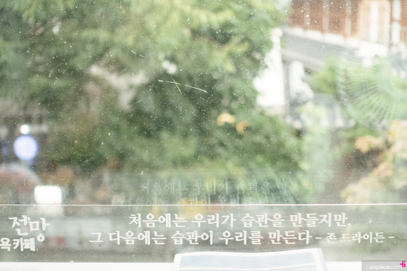 창 밖으로 보이는 풍경과 지나가는 사람들을 구경하며