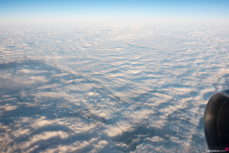 드디어 이륙! 창 밖으로 눈 덮인 풍경이 보였다.