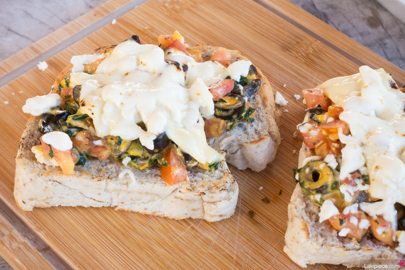 토스트 위에 다양한 채소와 페타 치즈가 올라가있는 음식이었는데