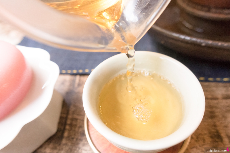 교동다원 대표차라는 황차와 시즌 한정 벚꽃 양갱을 주문했다.