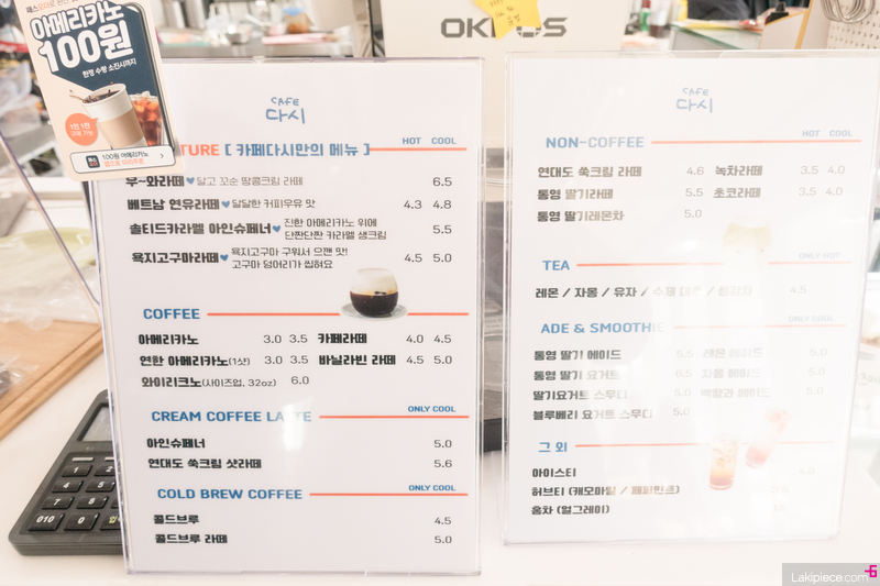 통영리스타트플랫폼 2층에 위치한 CAFE 다시