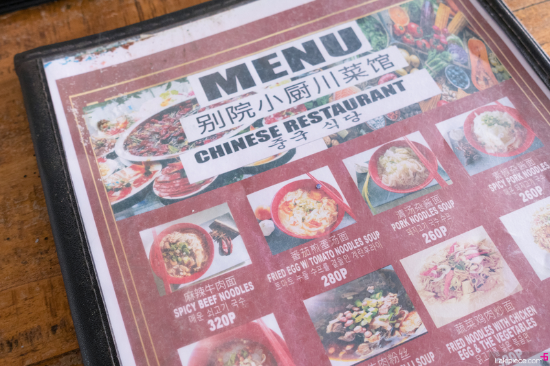 메뉴판에는 한글로 '중국 식당'이라고 적혀있었다.