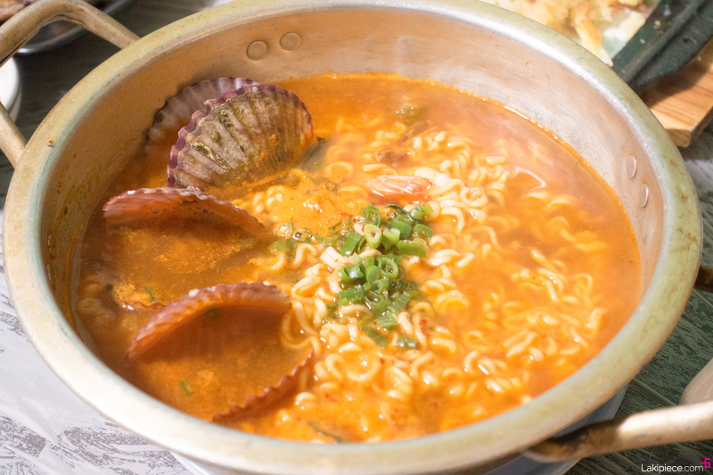 가리비 등 해산물이 퐁당 빠져있는 해물라면!