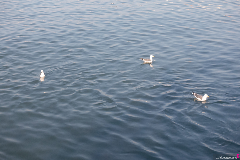 바다위에 두둥실 떠 있는 갈매기들