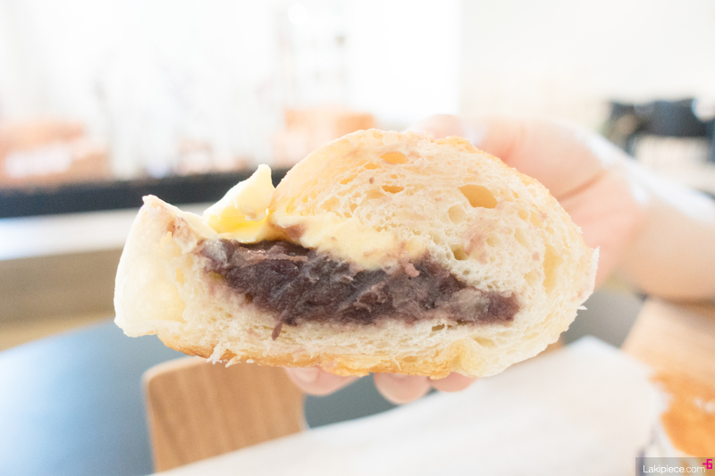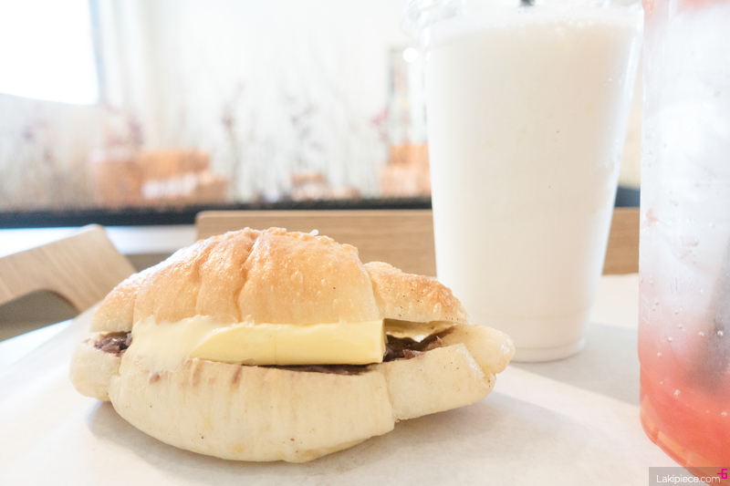 소금빵에 버터와 단팥이 들어있는 빵이다.