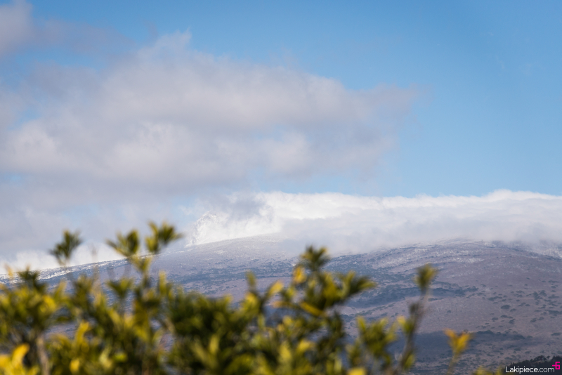 아까보다 구름이 걷혀서 한라산 백록담이 잘 보였다.