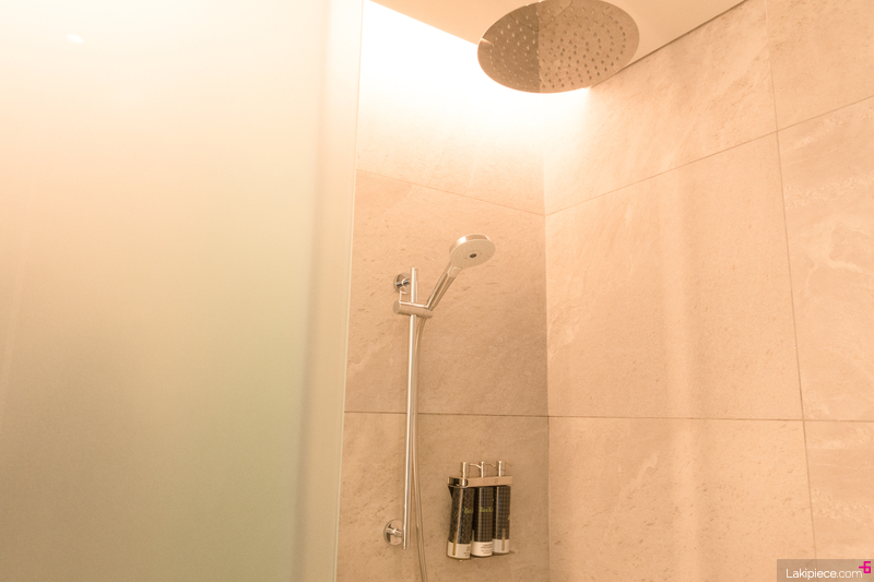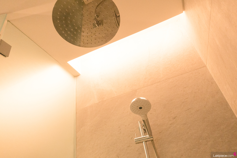 샤워부스에는 커다란 해바라기 샤워기가 설치되어 있었다.