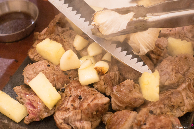 뜨겁게 달궈진 돌판에서 바로 구워주는 방식이었는데,