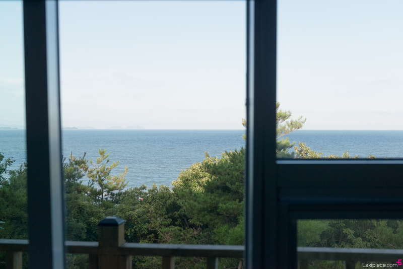 창밖으로 바다가 보인다.
